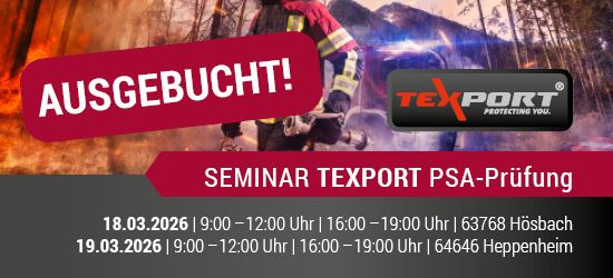 Bitte bringen Sie an diesem Tag Ihre eigene Texport Schutzkleidung mit, an dem Sie die Prüfung vornehmen.
